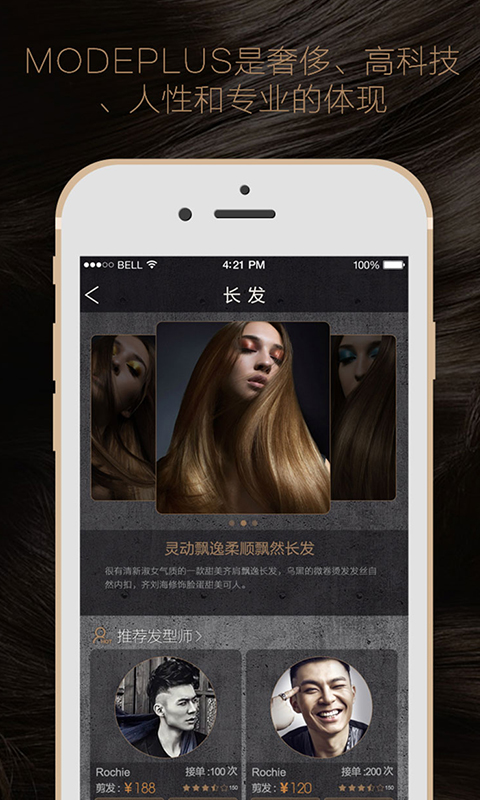 美发师们全部挑选行业内的领头羊,M+公司在发型师注入后对发型师进行全方位包装,聘请高级形设顾问对发型师个人进行全方位包装及设计,同时也会将发型师打造成明星御用发型师,集合专业技术、个人形象、素质涵养、时尚触角,从而形成了行业内不可多得的精英团队。是的,ModePlus app就是一个只针对M+旗舰店开放高端美发品牌!