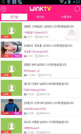 winktv app是一款在线美女直播软件。winktv手机客户端上面汇集了很多韩国美女主播,你可以观看美女直播,还可以与她们语音聊天互动。winktv,让你交到更多韩国美女朋友!【软件特点】