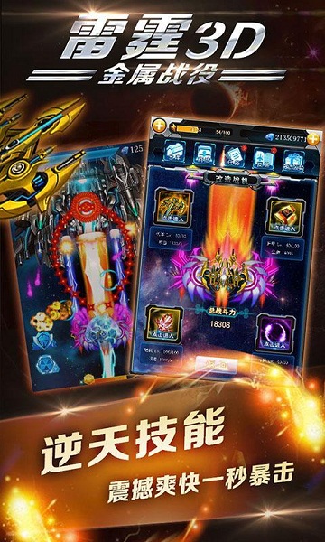 《雷霆3D金属战役》是一款最强3D飞行射击游戏!在游戏中您可以驾驭自己的战机在3D的游戏世界中与无穷无尽的敌机战斗!最强BOSS技能组合,大量装备的组合强化,《雷霆3D金属战役》将会带给您前所未有的新型体验!还在等什么,快来进入《雷霆3D金属战役》的世界吧!【软件特点】