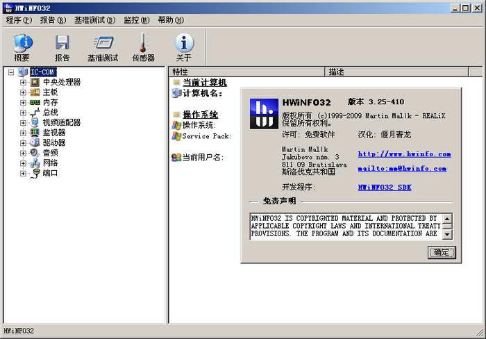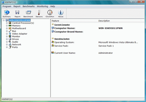 . 以树形分层显示所有的硬件组件. 以带有实时时钟监控的概要形式显示最重要的计算机参数
