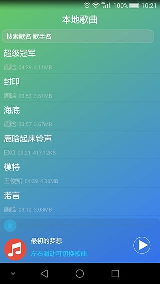 3.友好的滑动切换歌曲,下一首上一首随时切换。