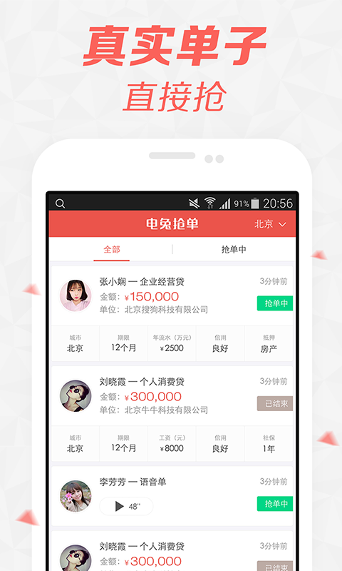 电兔抢单下载 v3.16.2 安卓版 电兔抢单app是一款为全国信贷经理提供的找单平台,有了电兔抢单app,商户们就不用自己出门去寻找客户,寻找单子,轻松呆家即可快速接单、抢单。有需要的商家可以快速下载哦。