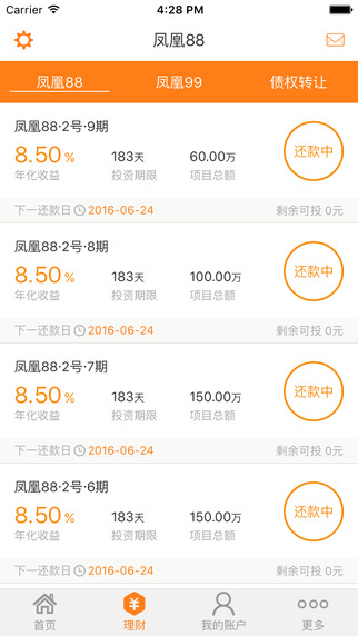 1.在凤凰金服购买产品后,资金能中途取出吗?若标有能转让的项目,可以进行二级债权转让。其他产品则需要在电子合同约定的期限到期后,本息一起归还。