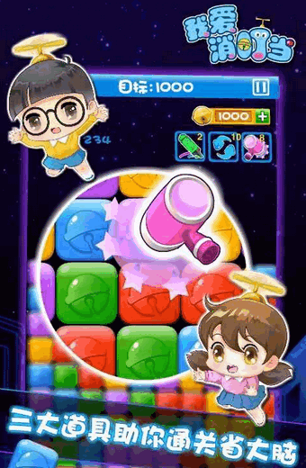 《我爱消叮当》最受欢迎的休闲游戏,这是最开心最萌最可爱的消除,点击两个相邻的元素就能消除,各种趣味的关卡等你来挑战,全民都爱玩的游戏!清新可爱的设计、高品质的画面、简单刺激的玩法,人人玩不停。要想最完美的获得每关奖励,必须深思熟虑,步步为营。也可疯狂点击,畅快淋漓。每天上百万人疯狂消叮当,手感流畅,体验很棒。经典再续,亿万玩家的选择消除游戏,达到目标分数即可过关,来看看你能通过多少关吧!,如相连的叮当大于2则可消除,相连数越多越好,最后如果剩余小于10则可以得到额外的加分。