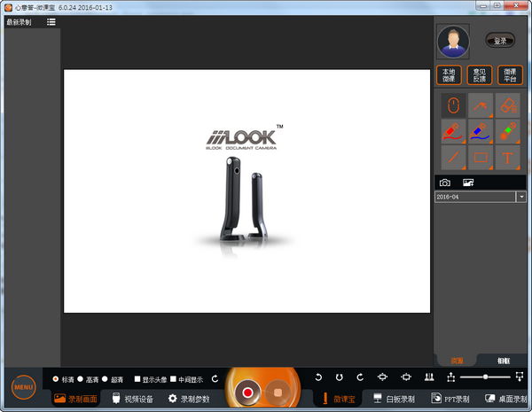 实现教学课件讲解(如PPT\WORD\视频\网页\电脑桌面等)和视频展示的“一键切换”即软中控,支持手势识别(如触控旋转、放大等),便于教师多种教学内容的转换。 快拍仪可以用作高清实物展台,展示文档、实物。使用配套的白板展示讲解工具软件,教师可以在展示过程中,在电子白板上标注重点、批注、书写、画图、保存和发布共享等。课件制作微视频课件制作:心意答教学助手是广大教师熟知的优秀课件制作工具,完美地整合了快拍仪的功能,集成了具有公式识别功能的先进OCR识别模块,教师可以轻松高效地制作出优秀的课件和教案。 使用快拍仪及教学助手软件,可以快速高效地制作视频课件:录制在纸面上的书写、讲解过程,即纸笔讲解录像;录制PPT\WORD\PDF\JPG等的电脑屏幕讲解过程,即屏幕录像;录制教师的讲课场景包括表情和动作,实现多画面的合成。