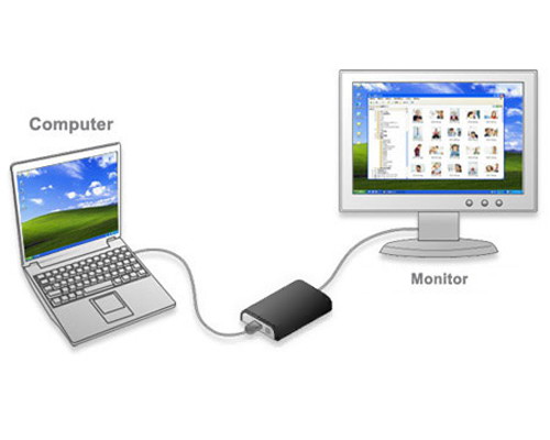 ·这种外置型DVI视频显示卡展示出专业的技术和优秀的性能.镜像模式可以克隆一个显示器内容到另一个