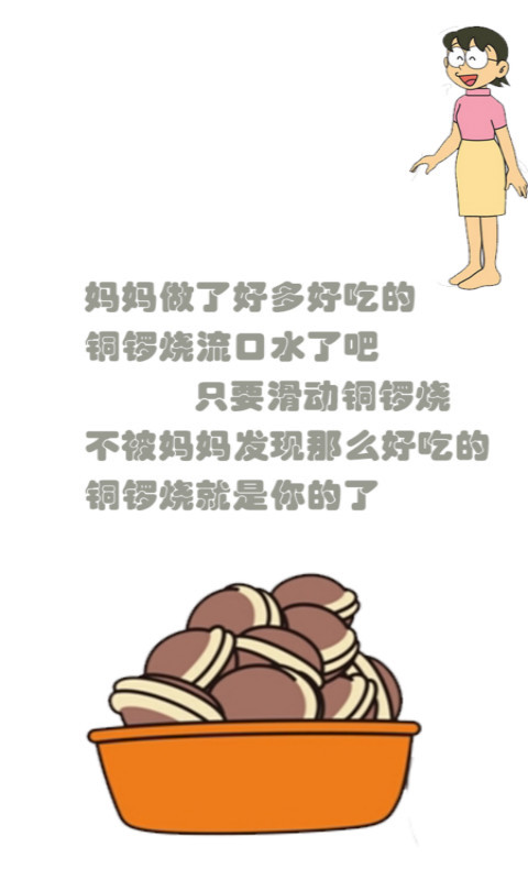 妈妈做了好多好吃的铜锣烧,看到都流口水了呢~现在你只需要把铜锣烧拖动到你的碗里,不被妈妈发现,那么好吃的铜锣烧就是属于你的咯!