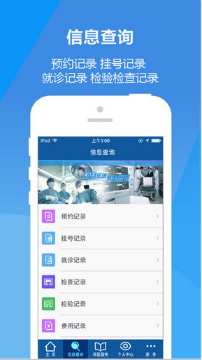 【报告单查询】患者可通过客户端轻松查阅自己的预约记录、挂号记录、费用记录、就诊记录、检验记录、检查记录、退费记录,免去往返医院的时间。