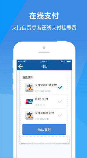 【挂号服务】提供本院全部科室的普通门诊、专家门诊挂号服务,并支持手机支付。【预约服务】提供本院全部科室的普通门诊、专家门诊预约服务。