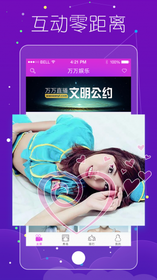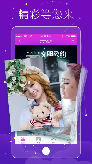 万万娱乐app是北京万万传媒有限公司于2016年4月上线的大型在线娱乐社区,属于互联网直播软件。万万传媒拥有技术先进的视频直播间,支持数万人同时在线视频聊天,更有海量优质娱乐主播与你即时互动