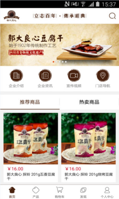 南溪郭大良心APP是专门为手机端用户推出的一款移动购物类软件。本应用具有商品搜索/浏览、购买、在线支付、订单速查、 手机晒单/评价、宣传视频观看等功能,为您打造一站式快捷、 方便的厂家直购体验。宜宾市南溪区郭氏明丽食品有限公司前身为清末【郭大良心明丽公司】,南溪豆腐干创始鼻祖【郭显清】人称(郭大良心),专做豆腐干生产与销售,因选材优良、工艺精细、配方独特,生产的豆腐干具有色泽红润诱人、豆香回味浓郁、质感细腻劲道并具四川麻、辣、鲜、香、纯之特色。为防假冒,郭显清在清末时就制作了【採铃】标识印章,公司于2002年用【採铃】名称正式注册商标。