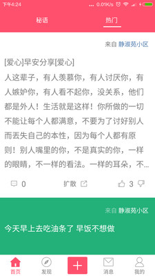 2.社交内容,有两个特点,一是匿名;二是基于小区或村庄,每个人可以看到自己注册地址周边五个小区或村庄的人发布的内容。