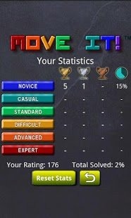 七彩滑块是滑块游戏 Move it!的免费版。共有6种难度72关。游戏的目标是把红色方块移到指定位置。类似"华容道"或者“汽车华容道”的益智游戏。滑块形状多样,难度遁序渐进,比一般的华容道有意思。