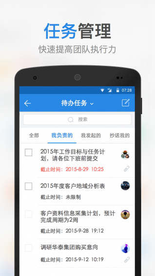 任务:从任务下达、跟踪、协作到归档完整记录,随时指导,共同进步。
