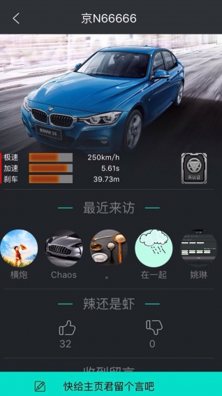 1、和附近车友聊人生支持对附近的车友进行聊天、吐槽。路上遇到想沟通的辆车,不论是白富美、高富帅、改装帝、漂移党、限量版,还是加塞狂、远光狗、急道侠、鸣笛翁、逆行汉、违停狂、溅水魔…你都能找到他们进行勾搭&吐槽。