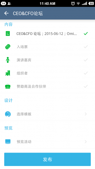 - 查看您活动组织的资料