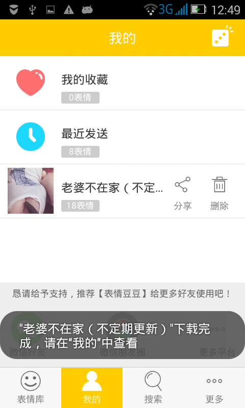 (2)发到微信的表情,我们想去掉“来自表情豆豆”的小尾巴,但微信接口规定必须带,我们很无奈!