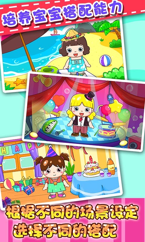 每一个宝宝都是家里最可爱的小公主,宝宝公主换装是一款专为小公主设计的趣味换装游戏,操作简单,趣味多多!新版换装游戏火热上线!该游戏提供不同造型的可爱的人物角色选择,更多丰富的游戏场景,锻炼宝宝根据不同的场合搭配不同的服装,当然还有美丽可爱的公主裙帮宝宝打造自己的公主梦,从小培养宝宝的搭配能力,更有各种趣味服装饰品供宝宝挑选,让宝宝随心所欲选择自己喜欢的搭配!培养小公主的生活独立能力,从这里做起!