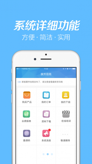 1.产品管理:一键订货、方便快捷;出货情况详细记录,便于管理。2.下级管理:一键邀请代理商加入,查看本人下级情况,及时了解下级问题和发展。