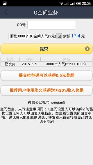 万人赚除了可以兑换Q币,我们还同时支持移动联通电信话费,免费QQ会员、支付宝财付通充值、cmcc WIFI免费上网卡,还可以兑换充电宝、u盘、日历、壁纸、360wifi等实物奖品。QQ名片赞,QQ空间说说赞,手机QQ个性标签赞,圈圈赞,空间人气访问量。