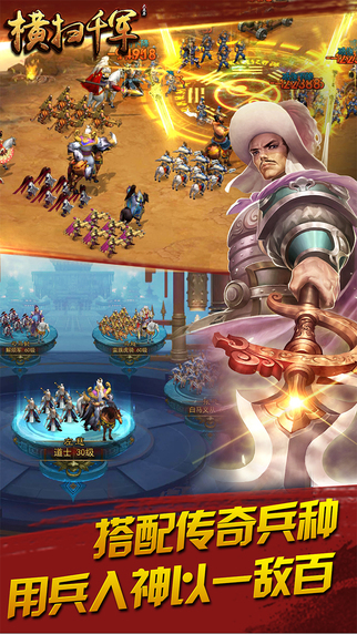 横扫千军iPad版为全球三国迷重新演绎气势磅礴的战争史诗;首度在游戏中实现拥有政治、经济、军事、人口等经典元素的城池建设,更有忠实还原的三国古战场地图、国家间精彩绝伦的攻城掠地玩法,带来最真实最有趣的三国战争体验!【软件特点】