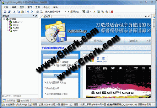 SqlEditPlugs V2.1.0 简体中文绿色免费版 Sqleditplugs是一款小巧强悍、免费绿色的国产Sql编辑软件,其功能毫不逊色于国外的收费类软件。支持同时在多个数据库间同时操作。结合企业管理器和查询分析器的功能,支持智能感知,智能提示。提供像vs开发环境一样的代码编辑功能。