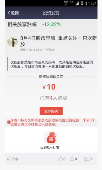 1、【关注撰稿人】摩尔金融现有1500余位知名投资撰稿人每天发表专业的投资观点文章,莫大、小小辛巴、柯中、里予舍人你可以关注他们。关注的撰稿人新发文章,你会第一时间收到通知提醒。