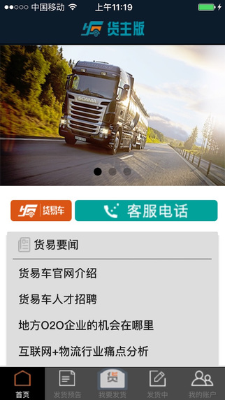 货易车货主版是一款专门为货车货主打造的配货软件。使用货易车货主版可以查询运输消息,可以帮你在线抢单,还可以对货物进行物流监控等功能,非常方便!