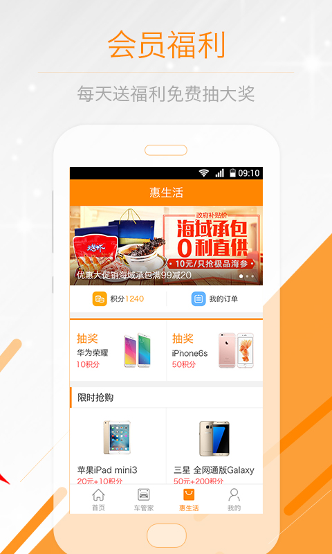 会员福利:每天免费抽大奖,积分兑换购买汽车用品
