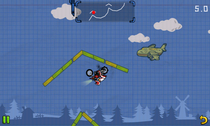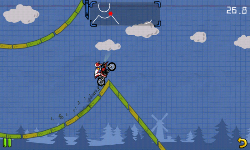摩托速进是一款摩托技巧类游戏。玩家需要倾斜手机来控制摩托,倾斜手机时,相当于给摩托车施加对应方向的加速度。同时,使用手指按住屏幕的左侧和右侧,也代表向左加速和向右加速两种操作。玩家要在在设定的关卡中使用各种技巧,来应对不同的障碍