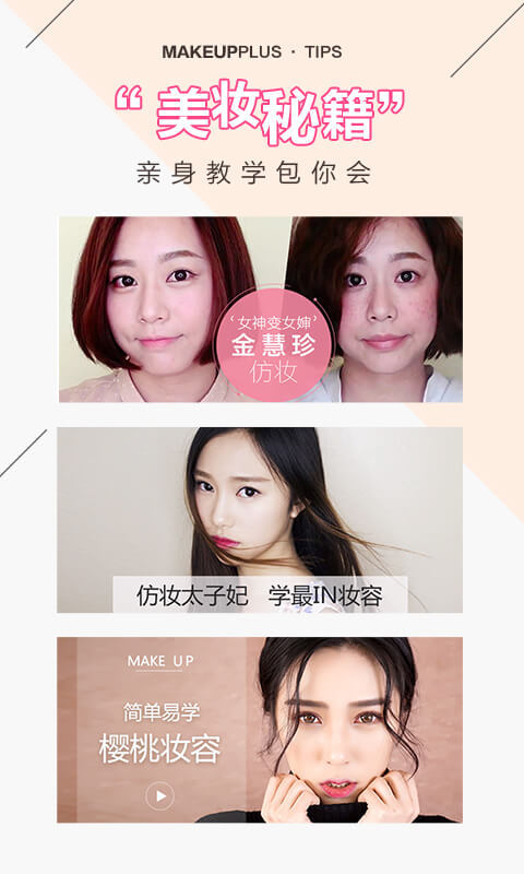 效果自然的时尚妆容!紧跟流行趋势的裸妆、韩妆、明星妆、日系妆、妖神妆等妆容,让你瞬间拥有自然美妆效果。