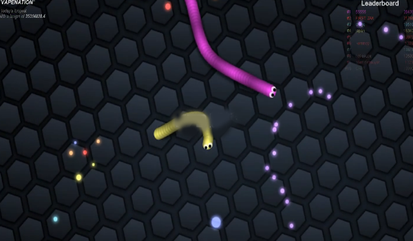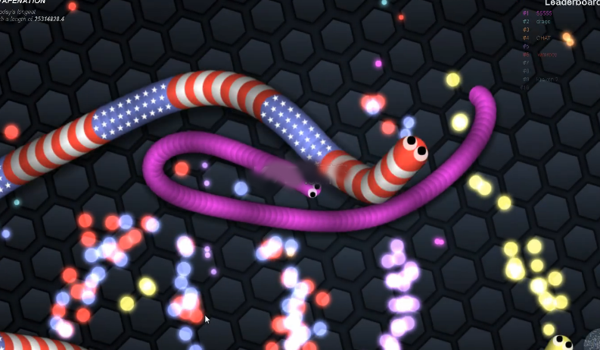 《蛇蛇大作战 slither.io》是一款结合了Agar.io和贪吃蛇的玩法的休闲游戏。游戏的玩法类似于经典的贪吃蛇游戏。是一款简单但是乐趣多多的游戏,但是需要玩家们有一个不错的操作能力和迅速的反应能力了。线上对战,但侵略性比Agar.io低。在游戏中玩家会化身为一只小小的蛇,在比赛中通过吃掉小亮点来使自己变得更为强大!