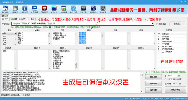 4、一键组合成上万条标题,独立伪原创产品内容。
