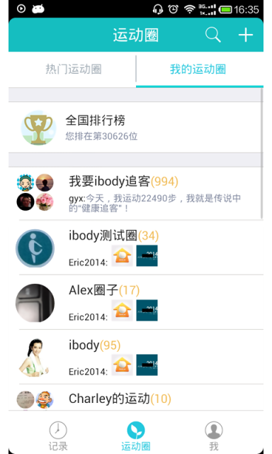 -与朋友组成圈子,可在圈子内进行排名,分享动态,召集活动。