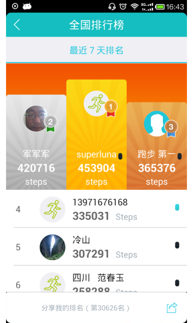 -可分享的内容多样化:运动量,运动路线,排名,成就。。。