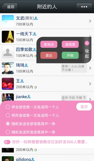 1、向附近的人自动推送信息;