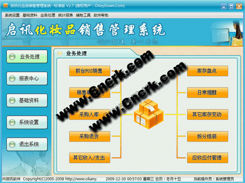 启讯化妆品销售管理系统 V3.0 简体中文绿色特别版 启讯化妆品销售管理系统是一款集POS销售、采购管理、销售管理、会员管理、简单财务管理以及完善的统计报表为一身。整个软件界面简洁、美观,系统流程操作人性化,使普通用户不需培训也能很快掌握软件操作使用方法,上手极易。强大报表与集成查询功能、无财务概念是本软件的最大特色。系统广泛适用于化妆品销售、化妆品专卖店。