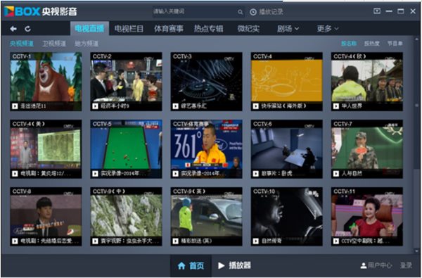 4.中国网络电视台子台导航:为中国网络电视台各个子台添加了在CBox上的入口,用户通过CBox点击对应的子台,即可访问该台。