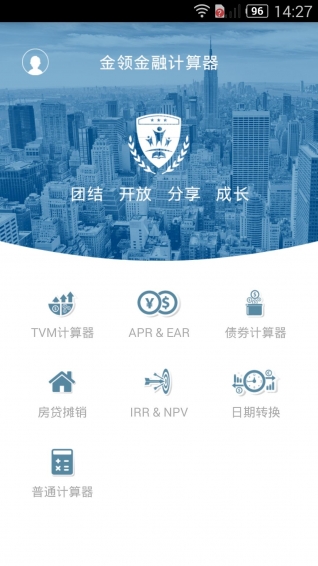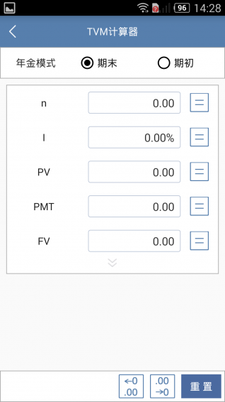 金领金融计算器是金领教育为广大学子以及需要从事金融行业的朋友专门定制的一款APP,集TVM计算器,APR&EAR;计算器,债券计算器,房贷摊销,IRR&NPV(内部收益率与实际利率);计算器为一体,里面包含了日期转换等功能。金领教育是2015年10月经主管机关注册成立的从事AFP、CFP、CFA、FRM和中级经济师的专业化教育培训机构。它以引领金融理财行业发展,创建终身职业教育平台为使命,以团结、开放、分享、成长为核心价值观,融入互联网+先进教育理念和技术,创立O2O先进教学模式,为教学效果提供了有力保证。