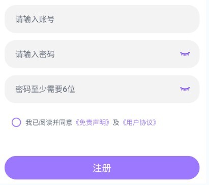4、填写账号与密码,点击同意协议,即可成功完成注册。(注:用户名需至少6位,且全部为数字)