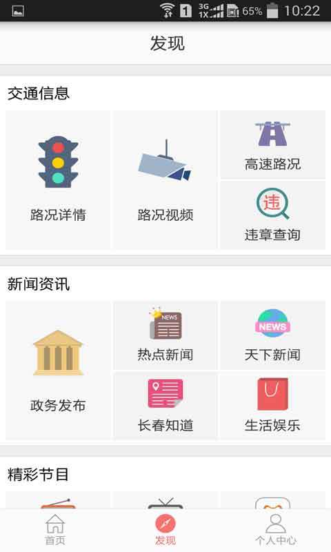 交通路况:长春市路口实施路况视频随你看,高速公路实时路况播报,智能导航(妈妈再也不用担心我迷路了),个性化路线定制服务,违章查询功能可实现违章推送方便实用。广播电视:长春广播电视台6套频率,5套频道实时收听收看,更多精彩不怕错过,往期回放一点就看。