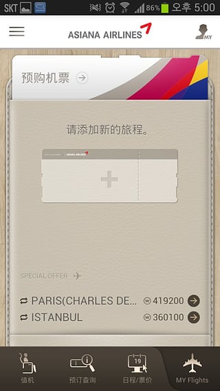 韩亚航空是一款由韩亚航空官方推出的手机应用。该应用可支持用户随时随地的购买车票,也可快速预订查询,让出游更加简单方便、随心所欲,享受自己的人生就从当下开始。