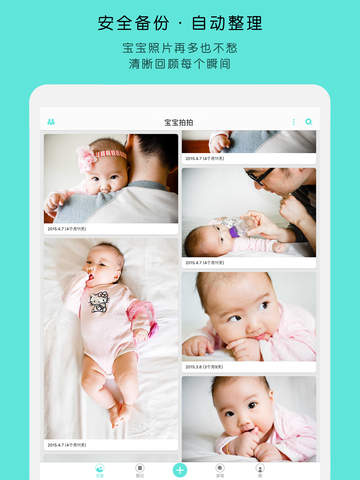 【自动图记】可以将宝宝的照片分门别类,例如“宝宝第一次”“宝宝满月”“宝宝百天”等;还可以将精致的图记分享到朋友圈、微博等,与亲友共享育儿的温馨时光!“幸福提醒":记得将亲宝宝的爷爷奶奶、外公外婆(姥姥姥爷),加入家庭共享,即使老人在远方也能第一时间关注宝贝成长和孩子长相变化。