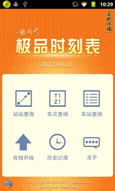 极品列车时刻表手机版 2013.10.08 安卓免费版 极品列车时刻表是一款脱机的列车时刻表应用,软件内部附带了列车的时刻信息,发到站,票价信息等,信息准确,使用方便,特别是在不方便上网,或无法联网的情况下使用。不需要网络支持,不耗流量。