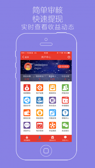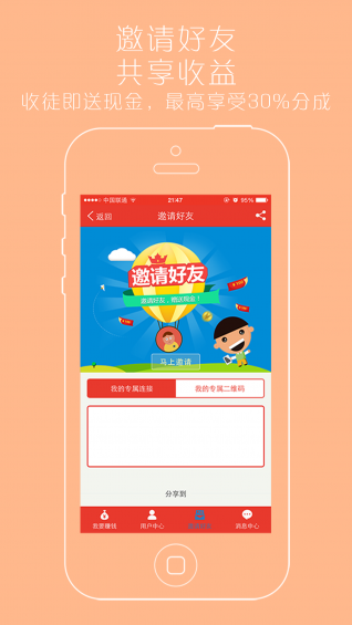 (6)邀请好友:将邀请页面分享给好友,好友注册成功后赚取零花钱的同时,您也可获得收徒奖励。