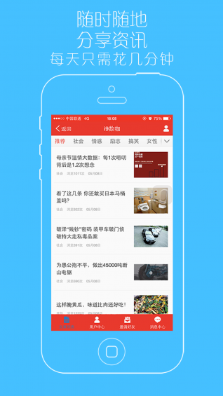 (4)分享转发:随手分享文章到您的微信朋友圈、新浪微博、QQ空间,分享成功后就有奖励。