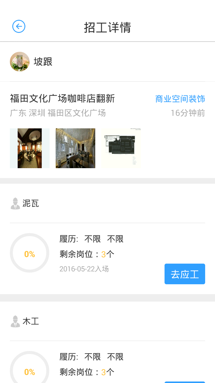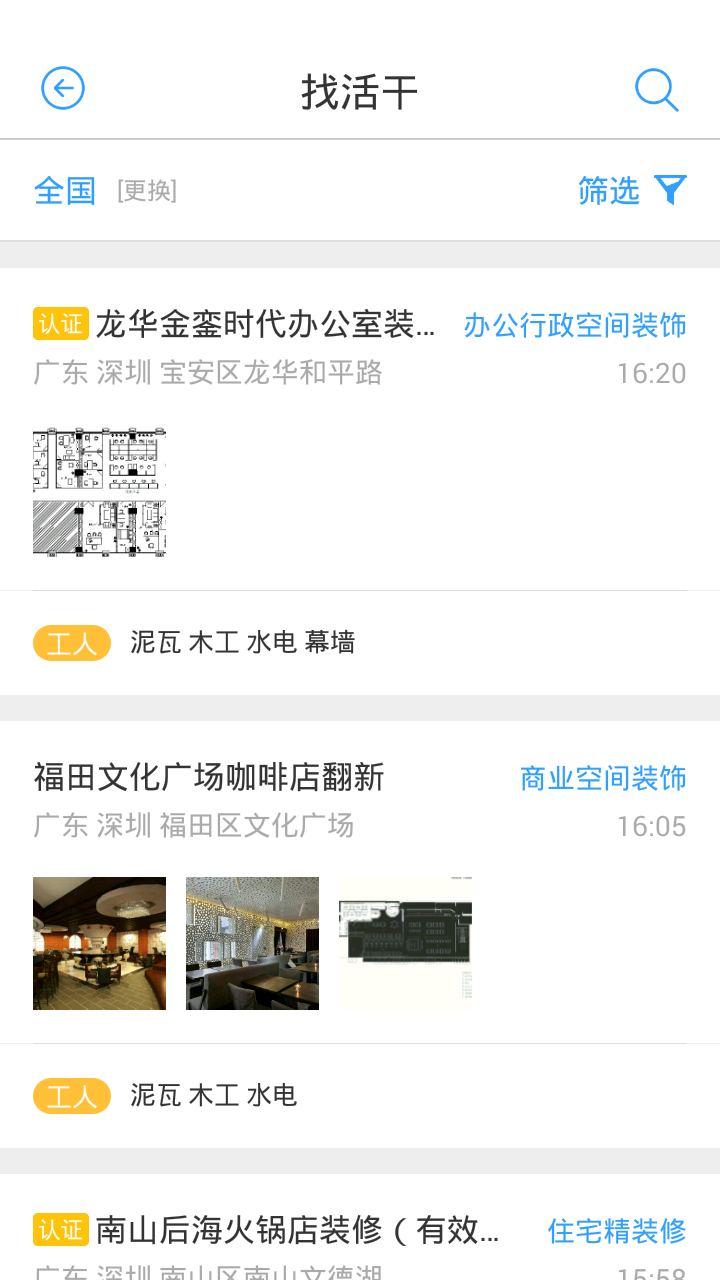 匠多宝是专为民工朋友找工作而设计的一款求职软件,该软件主要为民工朋友提供找活干、找工班、找工人等服务,让工匠们都能快找到好工作,赚钱更快,更方便!
