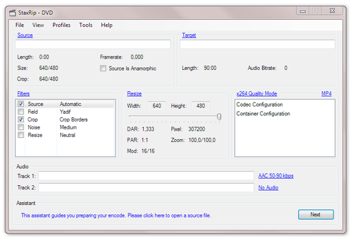 StaxRip V1.1.9.0 英文绿色免费版 StaxRip 可以转换你的DVD,DVB 或者DV 乃至几乎所有的视频文件,而且它是一个开源并且完全免费的软件.它不但支持MP3、MP4等常见文件,还支持AC3, AAC, Ogg Vorbis等音频文件以及AVI, MKV,DIVX等格式的转换.