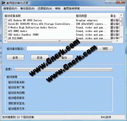 本软件具有强大的硬件驱动备份和还原功能,非常适用于常装系统的朋友,有了它,就不用常找系统驱动光盘了,装系统前把驱动备份,待系统安装后,还原即可。