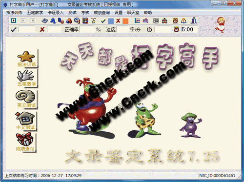 打字高手文录教学鉴定系统 v8.3 简体中文绿色特别版 打字高手是一款Win9X下集教学、训练、测试及网络监控于一体的指法及五笔字型专业培训考核软件,功能强大实用,使用简捷方便,性能稳定可靠,已广泛应用于家庭、学校及培训考核机构。该软件在教学中有许多独到之处,如指法训练的手形演示,对帮助初学者尽快掌握指法及规范指法非常有用,五笔教学的字根拆解,它为每一个爱好五笔的人提供一个极好的学习环境,让五笔练习成为一种看得见、摸得着的实践活动,帮助您在极短的时间内掌握五笔输入法。